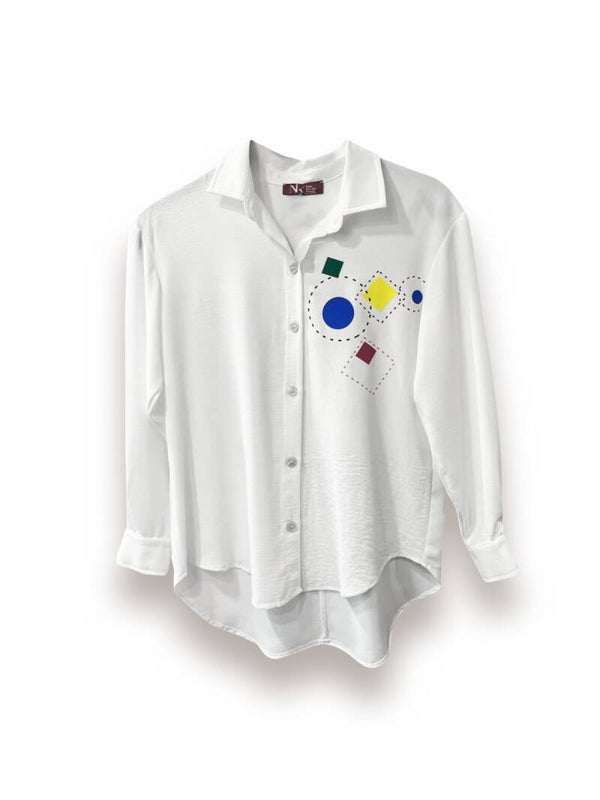 🤍 Chemise unie blanc cassé avec broderies ton sur ton