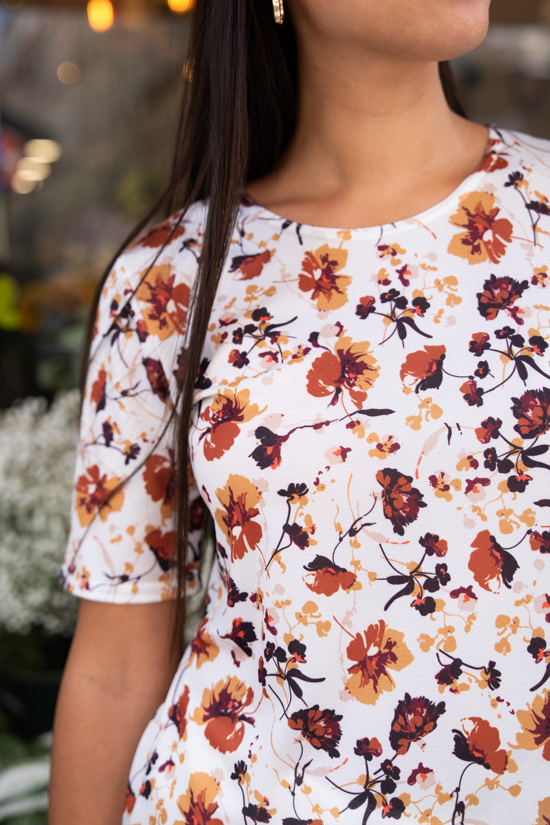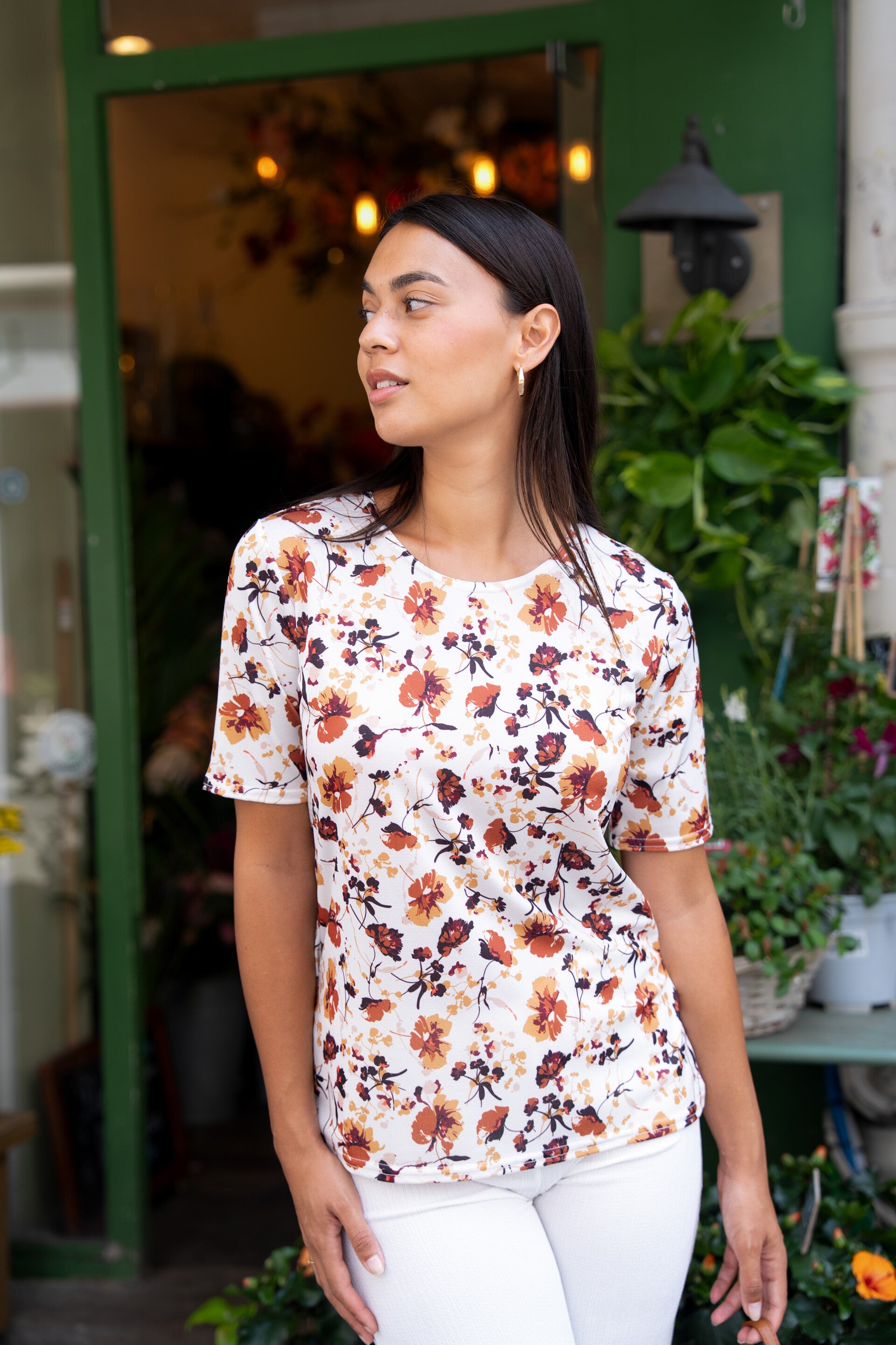 Le tee-shirt Alixe, avec son col rond et ses fentes discrètes de chaque côté en bas, épouse naturellement la silhouette tout en laissant une belle liberté de mouvement.